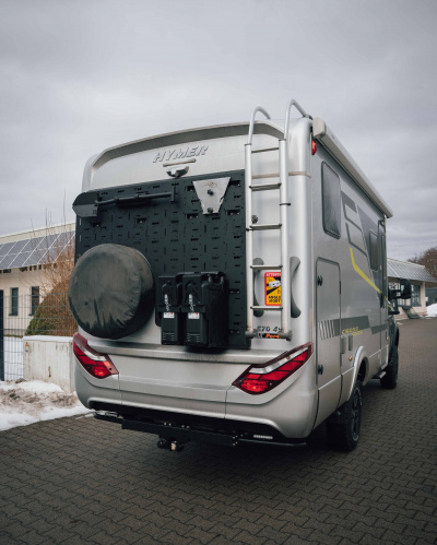 Heckträgerplatte passend für Hymer MLT Fahrerseite mit vorhandenen Reserverad & Aufstiegsleiter