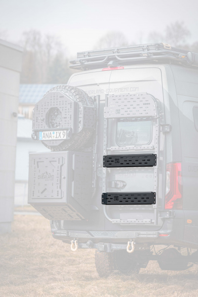 Modulplatte zur Befestigung von Equipment wie Heckboxen, Bikeracks, Bikelifts am Ove Rohrrahmenträgersystem