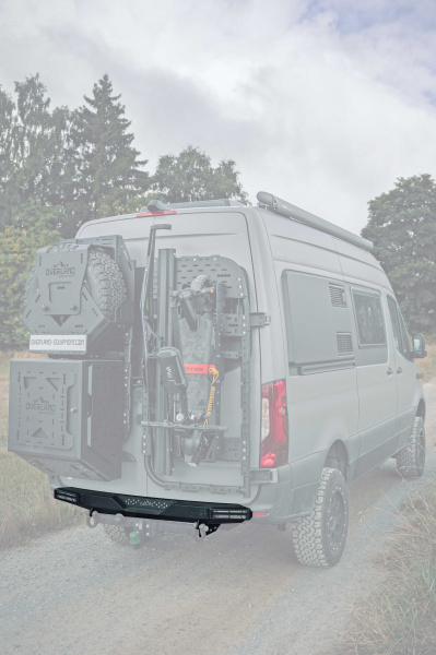 Heckstoßstangen Bumper mit integrierten Zusatzbeleuchtungen und Bergepunkten.