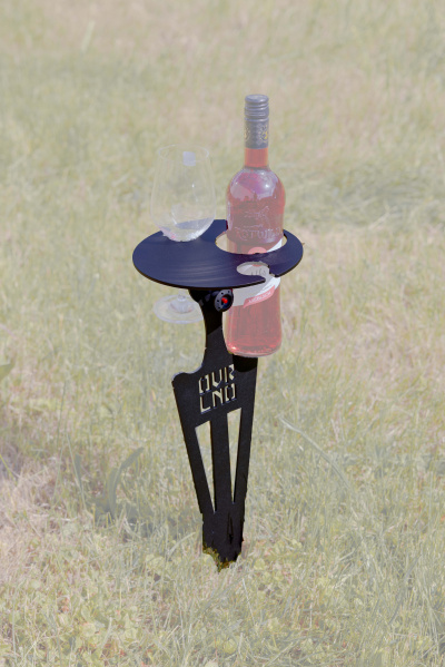 Kein Problem mit unserer klappbaren Outdoor Bar habt ihr ruckzuck einen passende Ablage für Flaschen bis 90mm Durchmesser und zwei Weingläser.