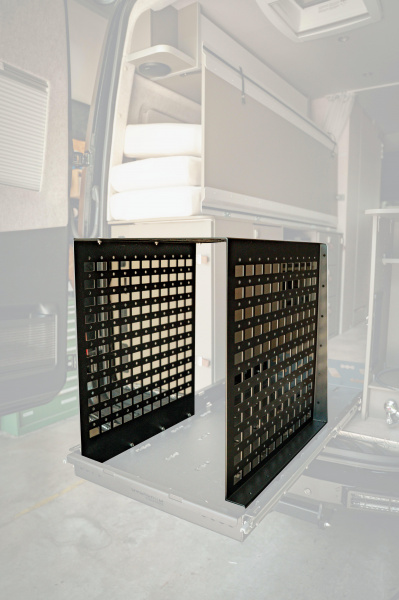 Passend für den Heckauszug Hymer S700 könnt ihr eine Befestigungsmöglichkeiten für Equipment sowie für Molle Zubehör schaffen. Die Trennwand ist über die ganze Länge verschiebbar um sie für eure zwecke Individuell auszurichten.